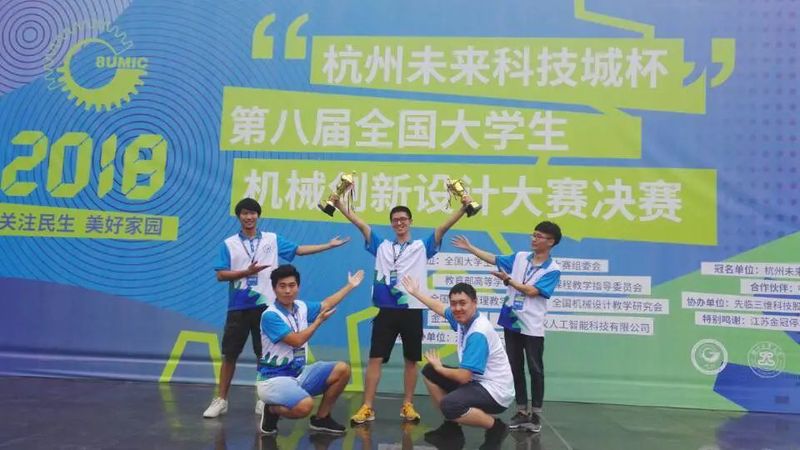 入学不久,刘逸喆听从班助的建议,加入机械工程学院专业科技社团——慧鱼实验室(一个搭建机电一体化模型的综合型技术社团)。整个大一,刘逸喆几乎把所有课余时间都放在了慧鱼实验室。大一下学期,他担任队长参加比赛。半个学期里,他见证了一次又一次凌晨4点的杭电。在带领团队攻克若干难题后,成功获得2018年全国慧鱼工程技术创新大赛一等奖,并以小组第一名入围决赛,最终获得2018年全国大学生机械创新设计大赛一等奖!